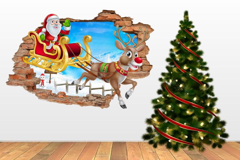Naklejki na ścianę Mikołaj Renifer Święta 3D 1301