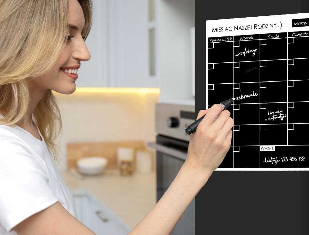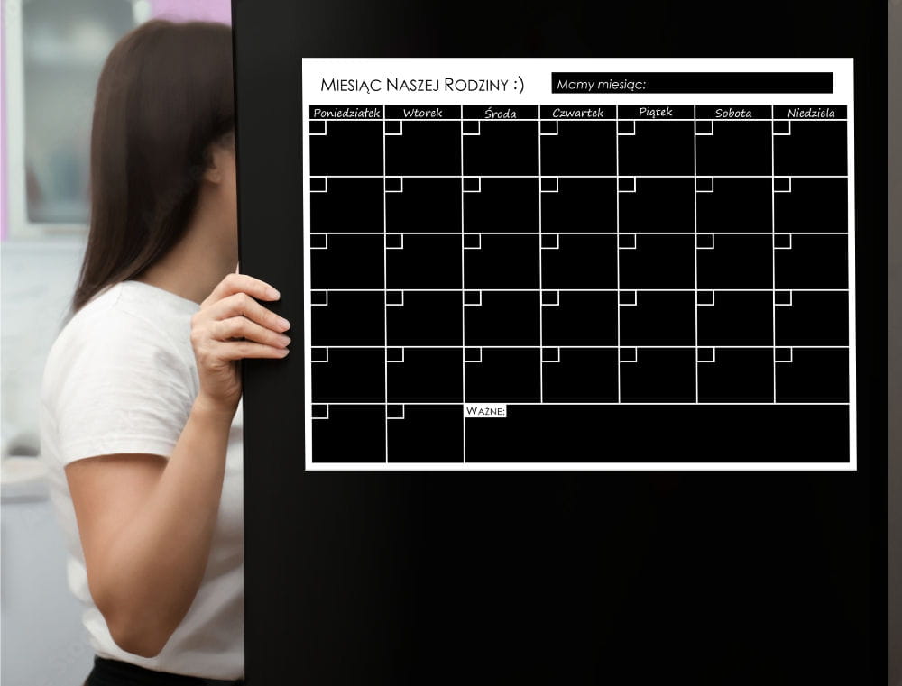 40x30cm Czarny planer na lodówkę, kalendarz magnetyczny miesięczny.