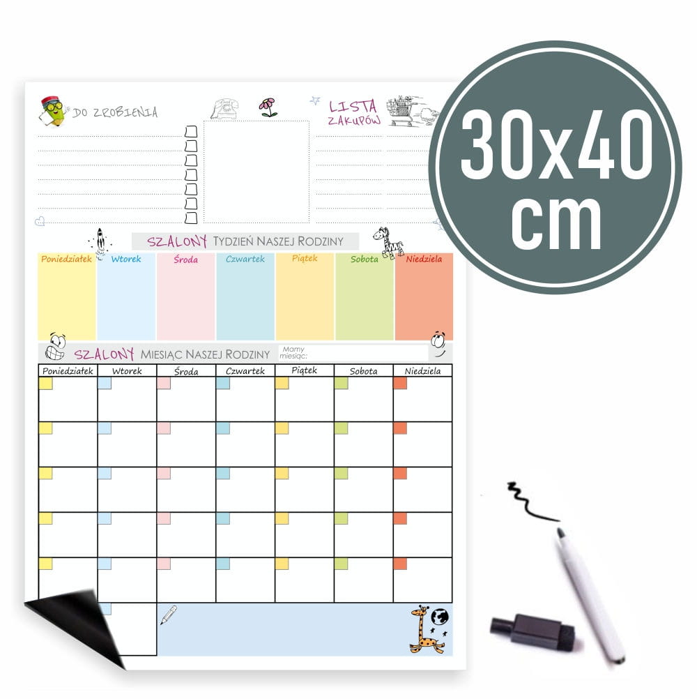 40x30cm Planer z czarnym pisakiem na lodówkę, kalendarz magnetyczny, notes, organizer