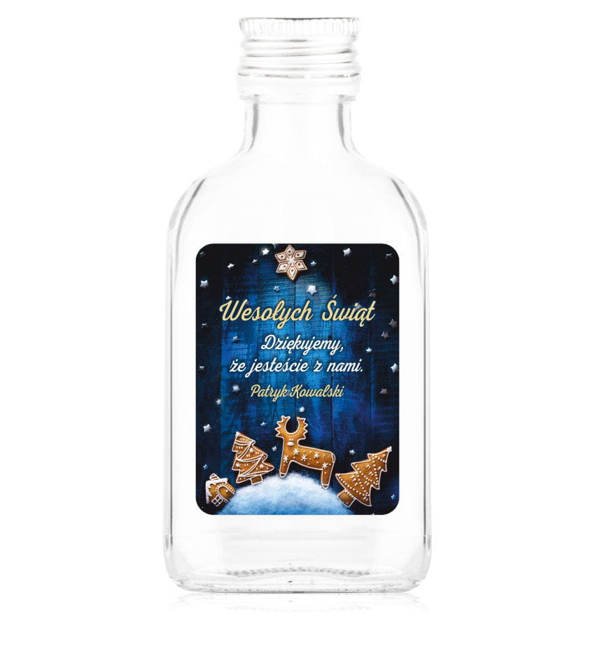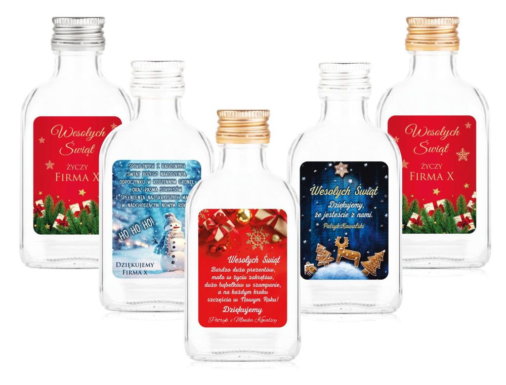 Butelka 100ml personalizowana z życzeniami, upominek firmowy na Święta.