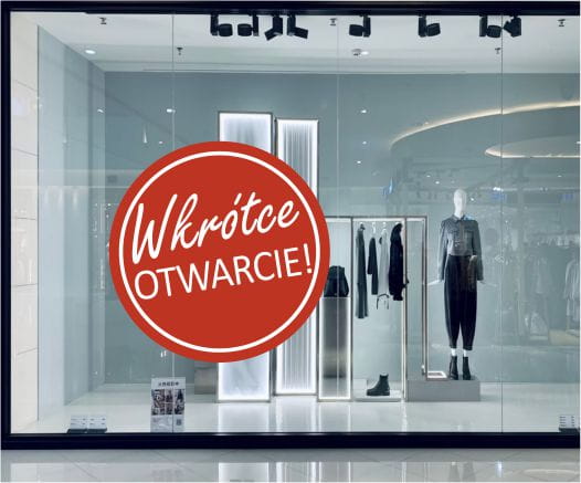 Naklejki reklamowe na witryny sklepowe "Wkrótce OTWARCIE"