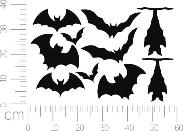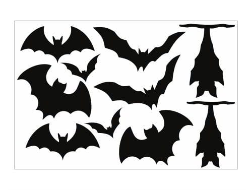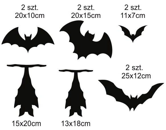 Czarne nietoperze - naklejki samoprzylepne, rozłożone na arkuszu 60x40cm.