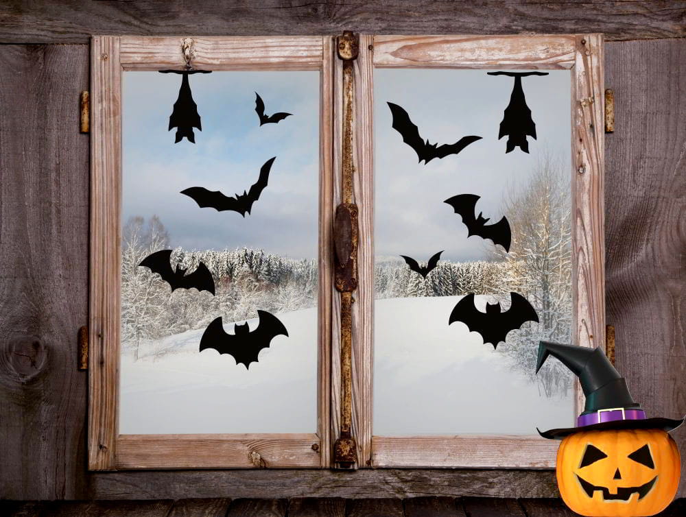 Naklejki na Halloween na szyby, okna z Nietoperzami