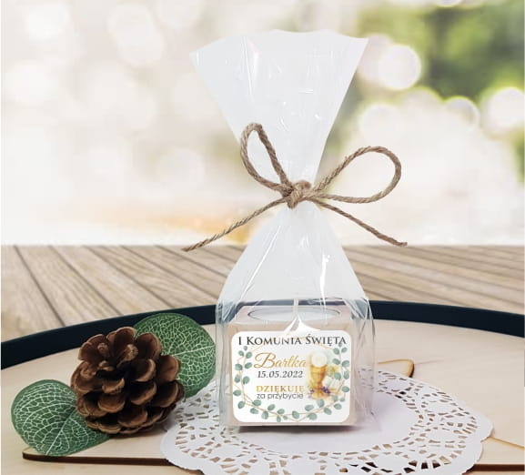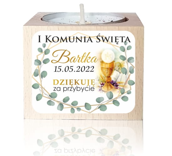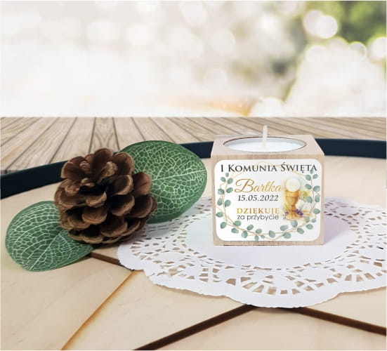 Drewniany świecznik naklejka, Świeczka, Komunia, Podziękowanie dla gości, LAM_1030