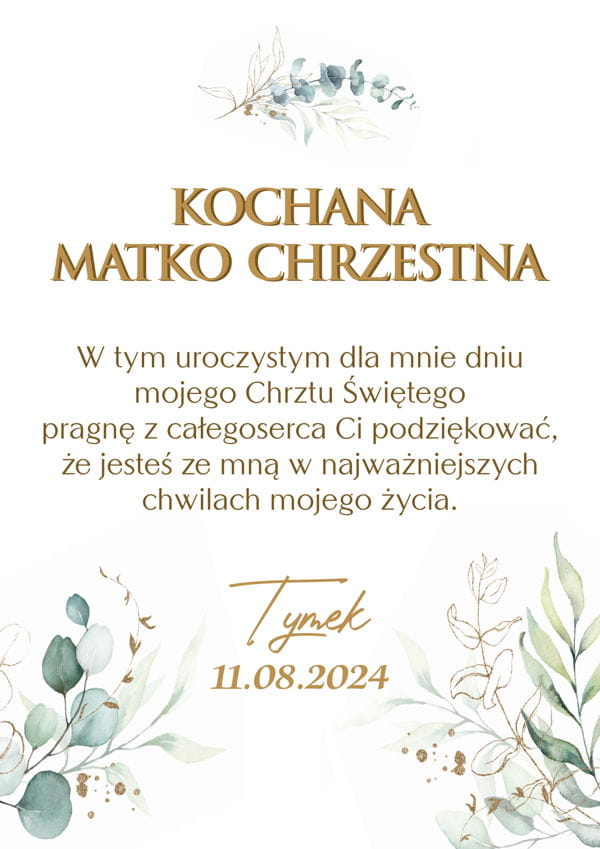Personalizowana grafika z podziękowaniami dla Chrzestnych to pamiątka na całe życie.