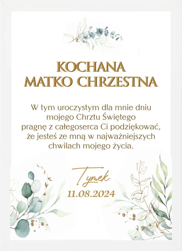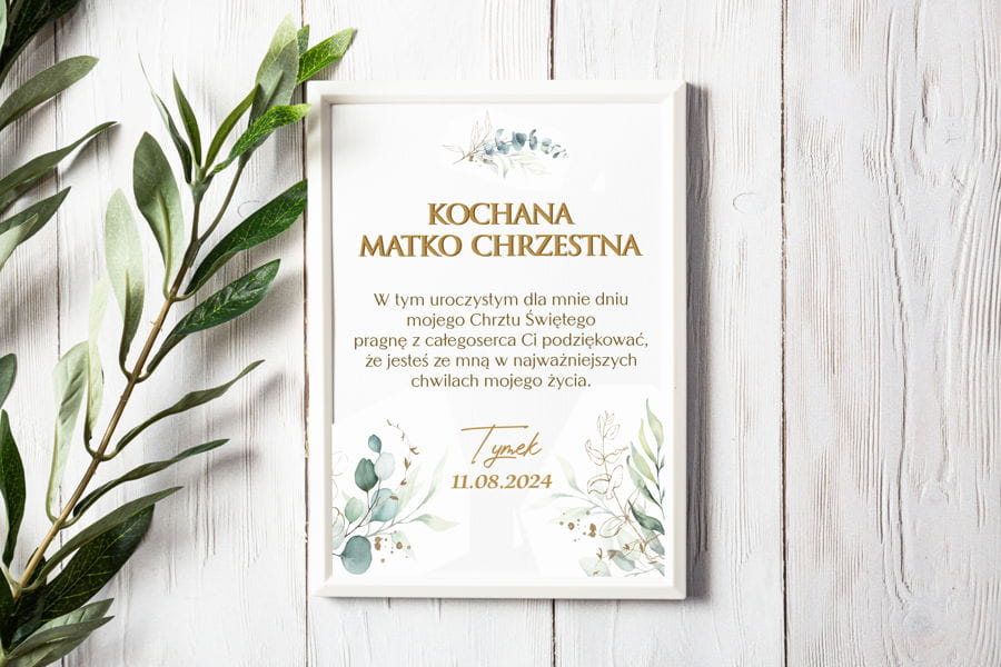 Personalizowany obraz w ramie Podziękowanie dla Matki Chrzestnej z okazji Chrztu Świętego.