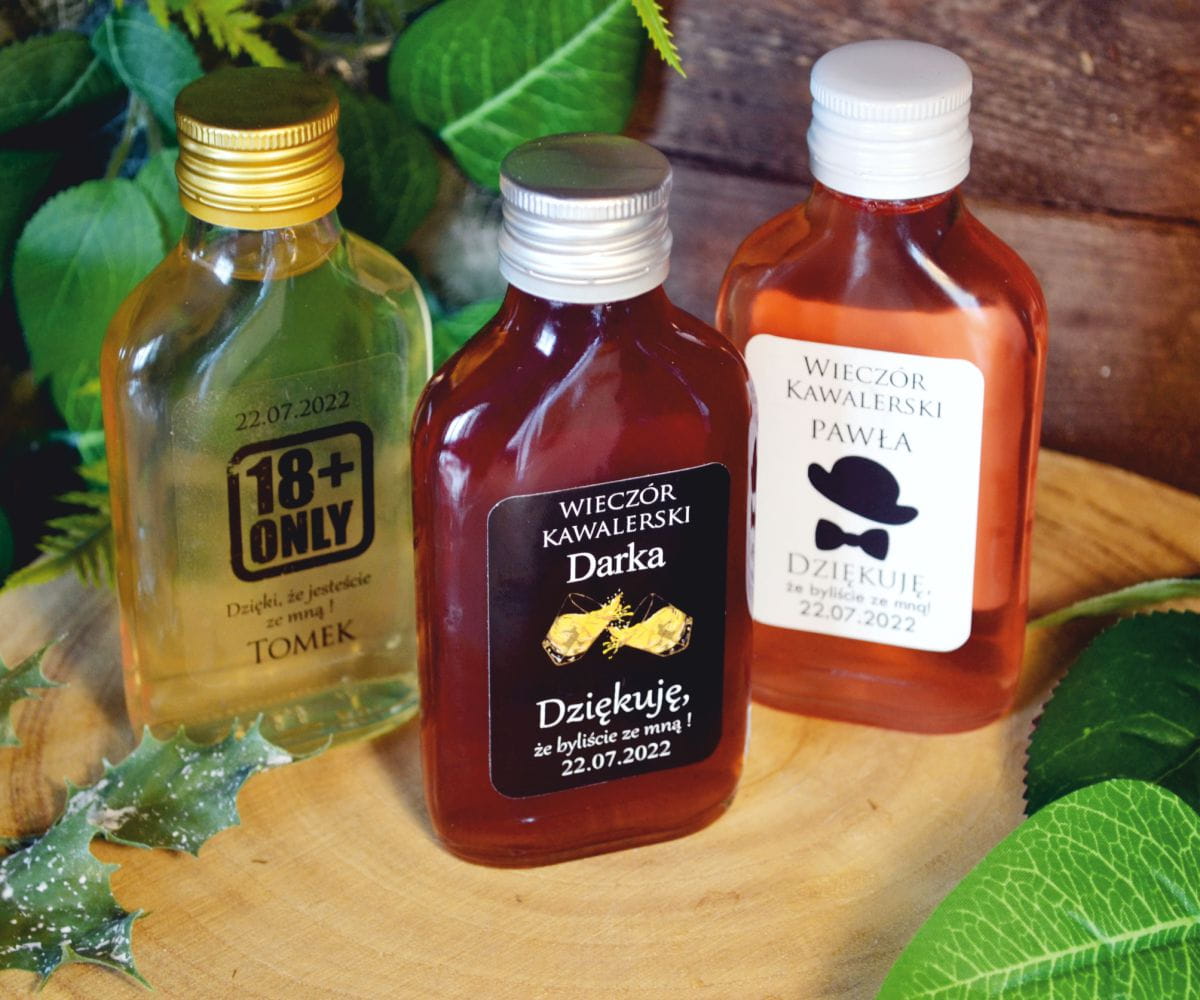 Butelka setka 100ml personalizowana, piersiówka na nalewkę, podziękowanie dla gości, wieczór panieński, kawalerski, jubileusz, urodziny, osiemnastka.