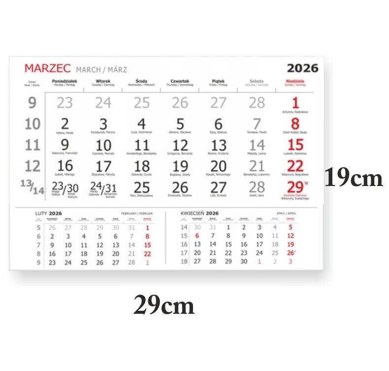 Wielkość kalendarza: 190x290mm