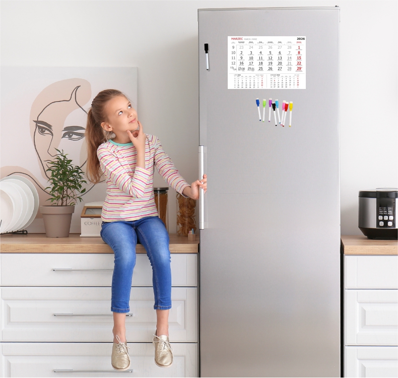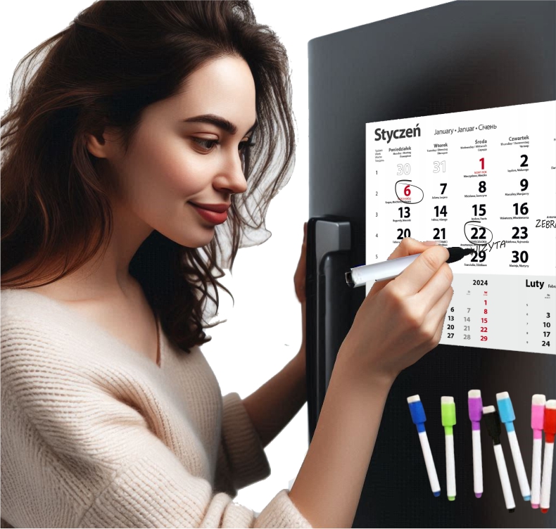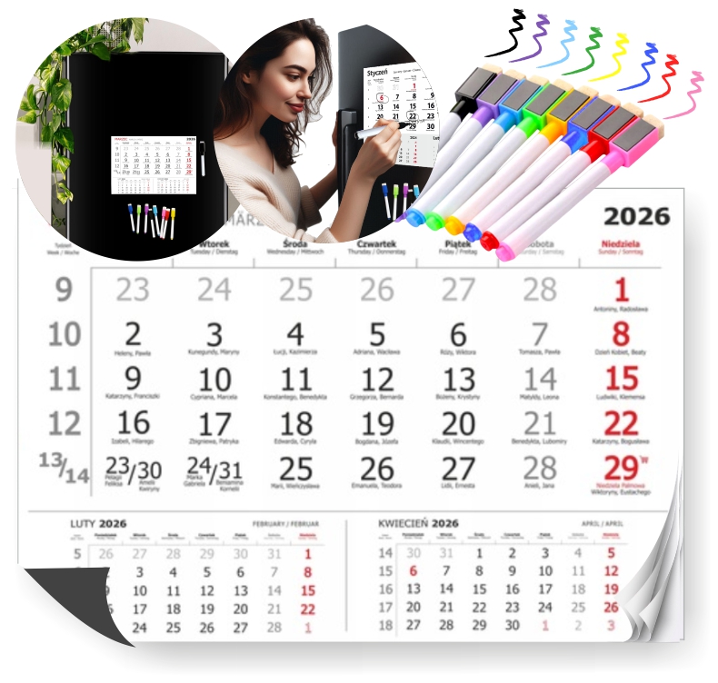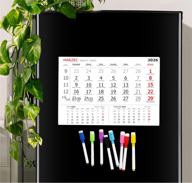 KALENDARZ 2026 magnetyczny PAPIEROWY na lodówkę + PISAKI 8 KOLORÓW MAGNES