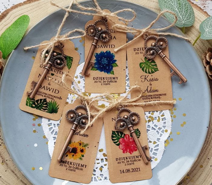 Otwieracz wyglądający jak stary kluczyk to oryginalne podziękowania dla gości, które z pewnością nie trafią do kosza.