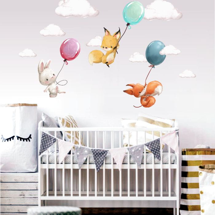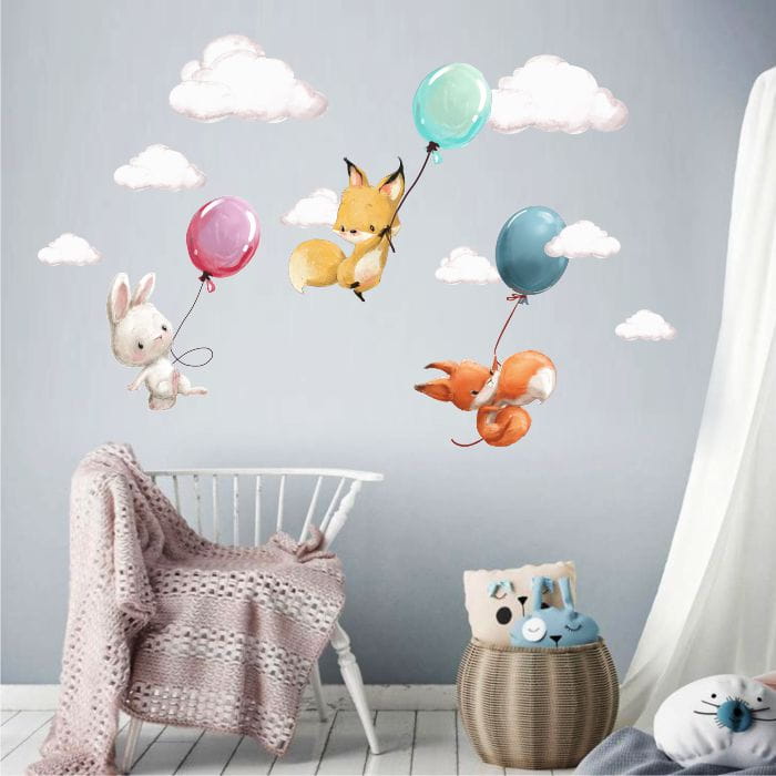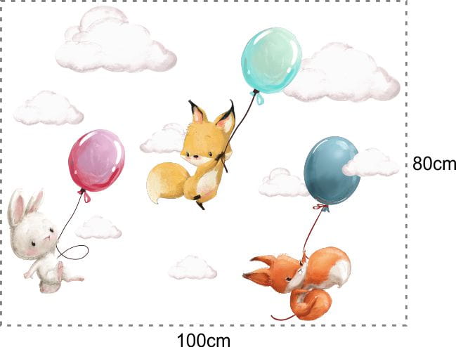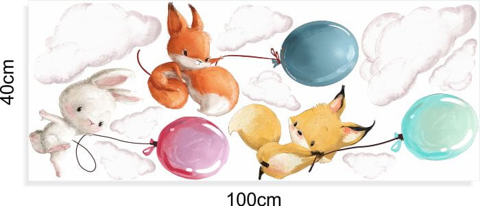 Króliczki Balony Zwierzęta z balonami Naklejki na ścianę PAST_4521