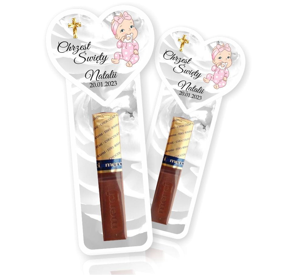 Słodkie upominki dla gości na Chrzest, czekoladki Merci