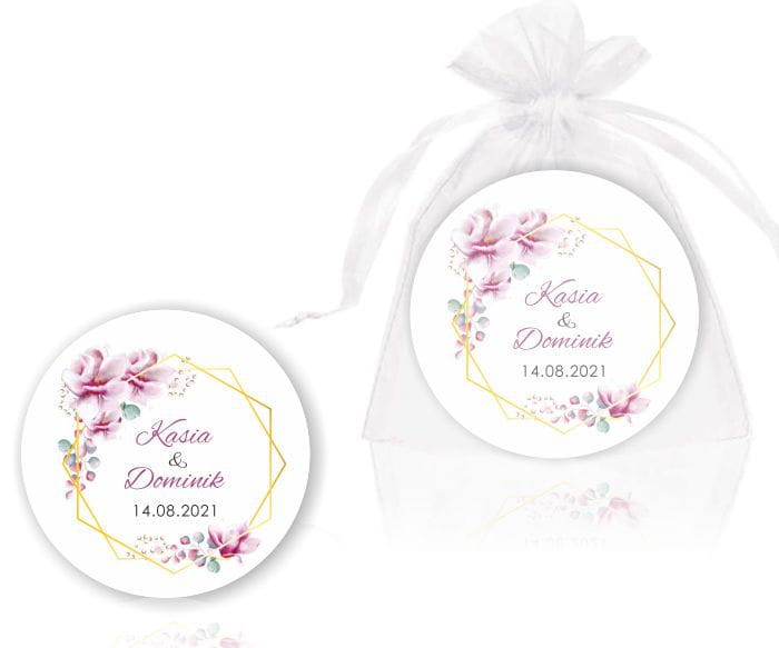 Młoda Para, Magnesy na lodówkę, Podziękowania dla gości, Różowe Magnolie, kwiaty.