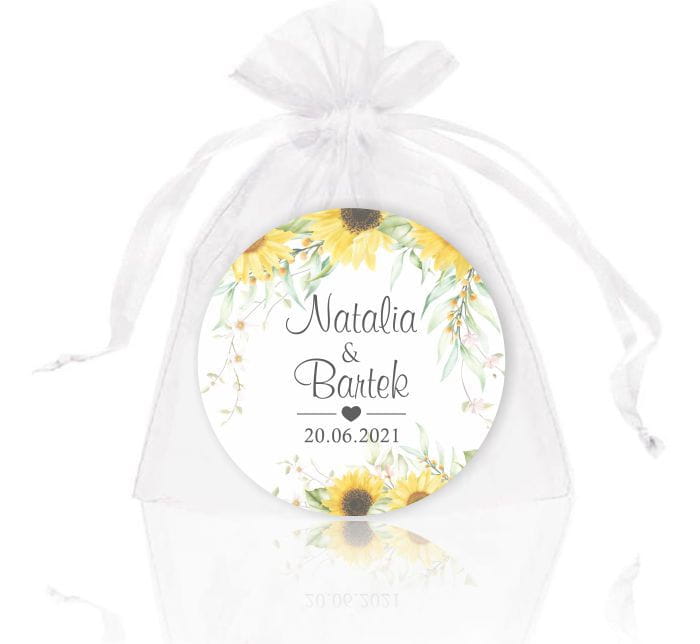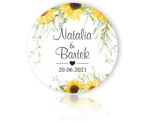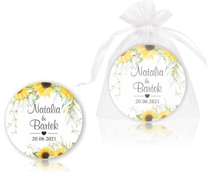 Młoda Para, Magnesy na lodówkę, Podziękowania dla gości, Słoneczniki, kwiaty słonecznika.