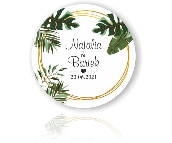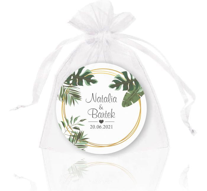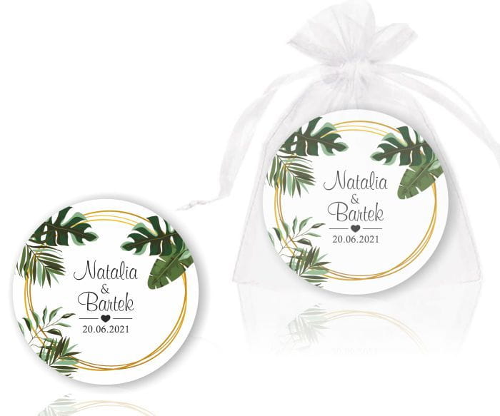 Młoda Para, Magnesy na lodówkę, Podziękowania dla gości, Tropikalne liście, palmy, Monstera