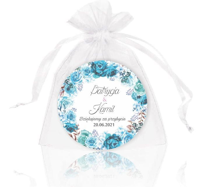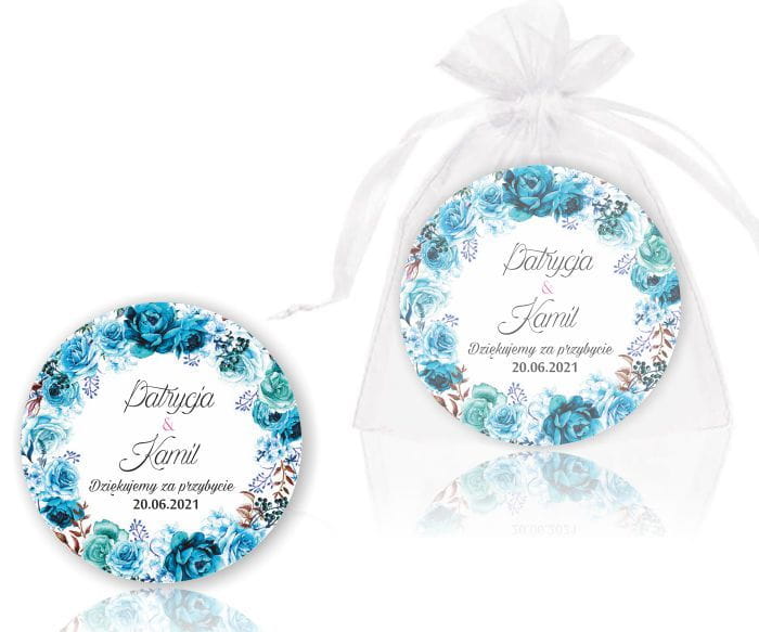 Magnes serce, Podziękowania dla gości, Wianek z niebieskich kwiatów, niebieskie róże