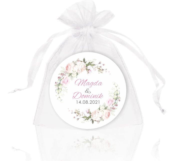 Młoda Para, Magnesy na lodówkę, Podziękowania dla gości, bukiet kwiatów, pastelowe róże.