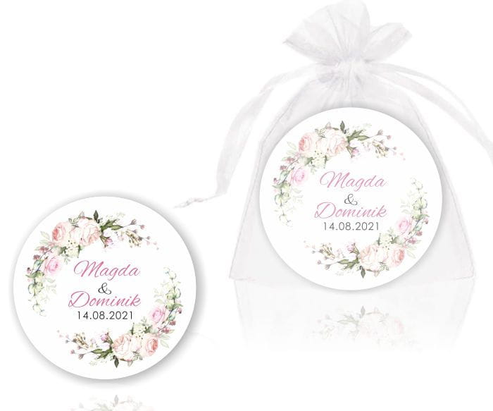 Magnesy z imionami Państwa Młodych i datą ślubu to oryginalna pamiątka dla gości weselnych. Magnesy ślubne są praktycznym prezentem, który z pewnością nie trafi do kosza. Są estetycznie wykonane i bardzo ładnie prezentują się na lodówce.