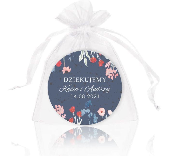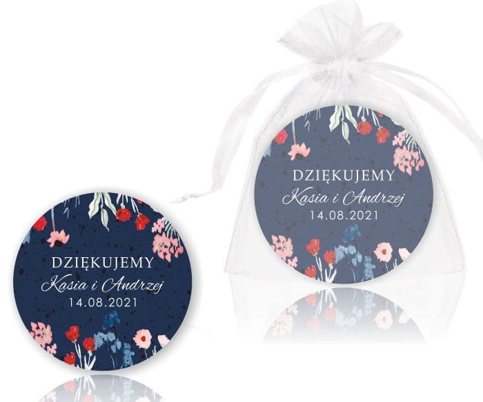 Młoda Para, Magnesy na lodówkę, Podziękowania dla gości, polne kwiaty na granatowym tle, akwarela.