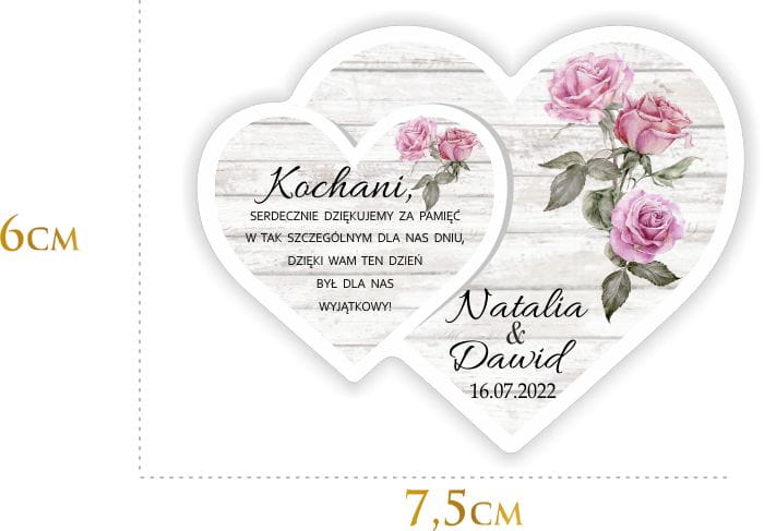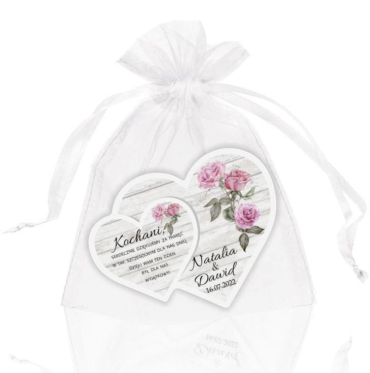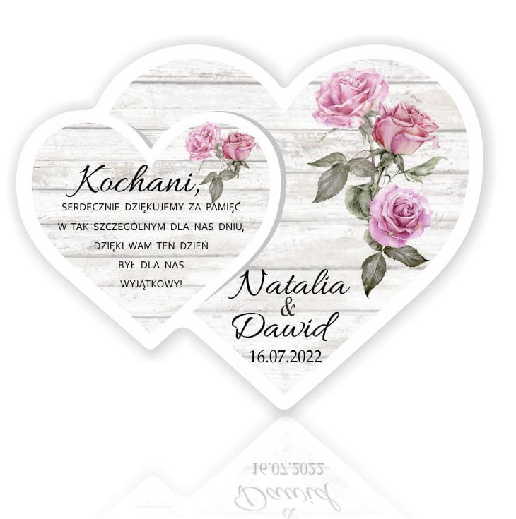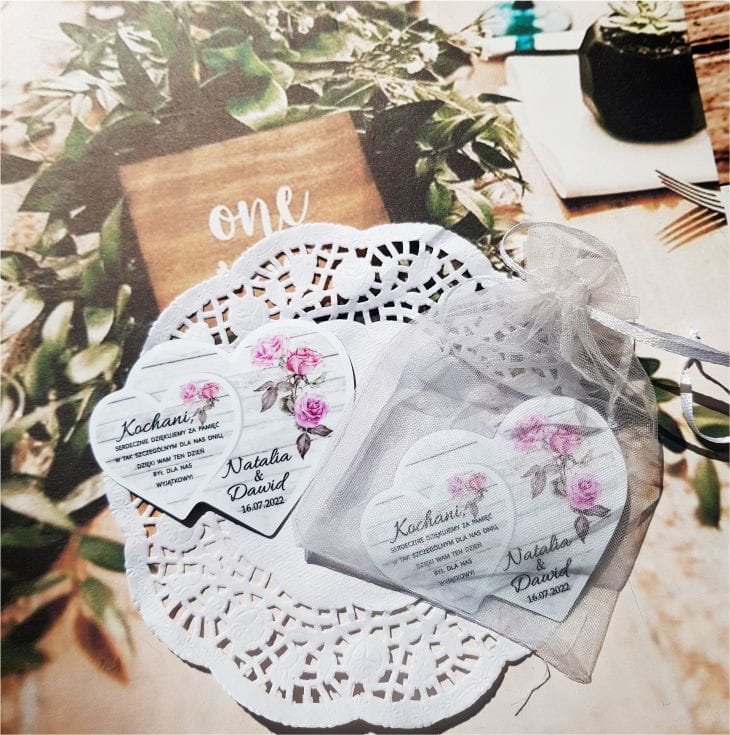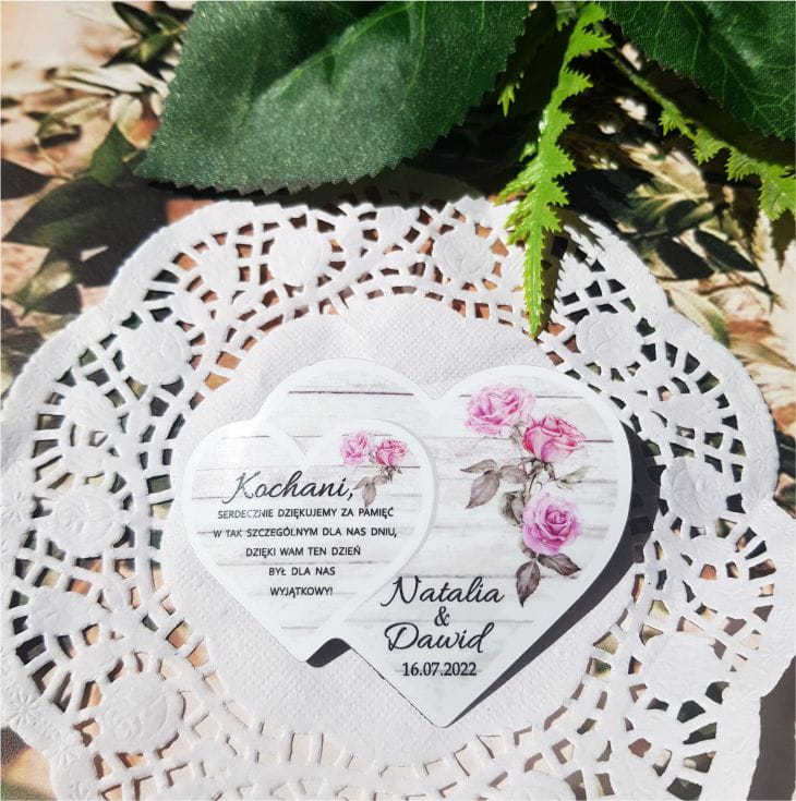 Magnesy z imionami Państwa Młodych i datą ślubu to oryginalna pamiątka dla gości weselnych. Magnesy ślubne są praktycznym prezentem, który z pewnością nie trafi do kosza. Są estetycznie wykonane i bardzo ładnie prezentują się na lodówce.