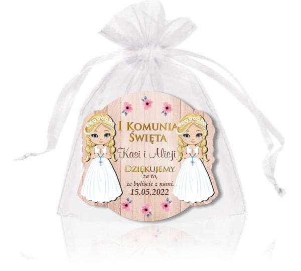 Magnes Podziękowanie dla gości Komunia Magnes dla bliźniaczek KOM_374