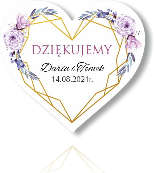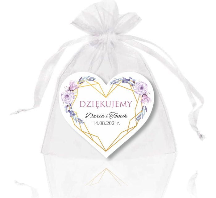 Magnes Serce, Podziękowania dla gości, Fioletowe kwiaty ze złotą ramką.