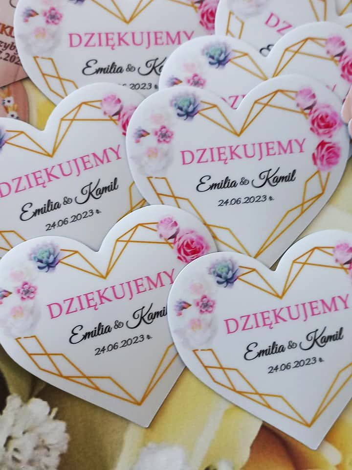 Magnesy z imionami Państwa Młodych i datą ślubu to oryginalna pamiątka dla gości weselnych. Magnesy ślubne są praktycznym prezentem, który z pewnością nie trafi do kosza. Są estetycznie wykonane i bardzo ładnie prezentują się na lodówce.