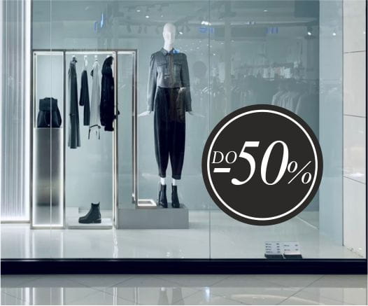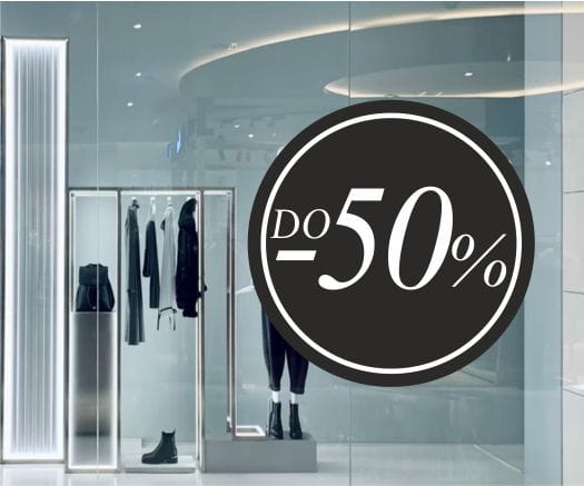 Naklejki reklamowe na witryny sklepowe "Do -50%"