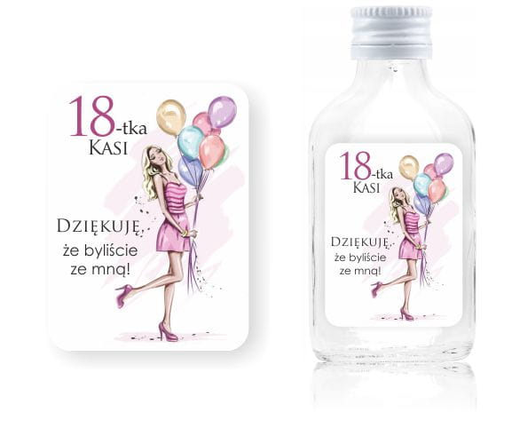 Naklejka na butelkę setkę 100ml piersiówkę Urodziny 18-stka osiemnastka 40-stka