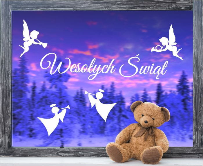 Świąteczne naklejki "Naklejka świąteczna z napisem "Wesołych Świąt" i czterema Aniołami "