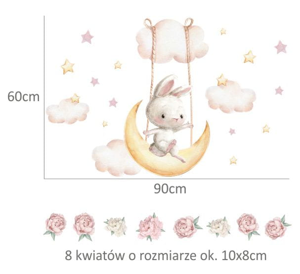 Naklejki dla dziewczynki i chłopca, króliczek siedzący na księżycu PAST_4522