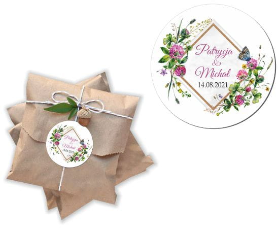 Naklejki personalizowne 50 szt. 4x4cm, Polne kwiaty, Podziękowania dla gości, NAK516