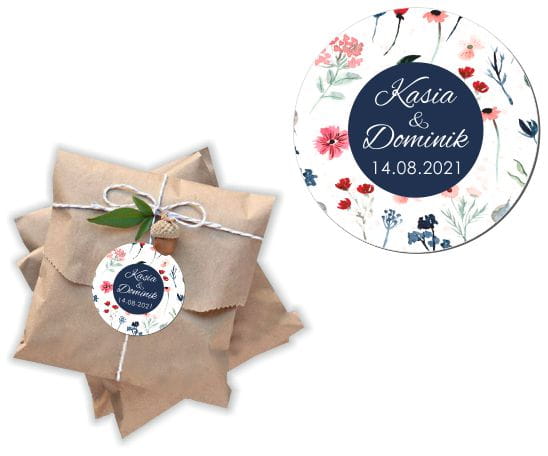 Naklejki personalizowne 50 szt. 4x4cm, Polne kwiaty, Podziękowania dla gości, NAK521