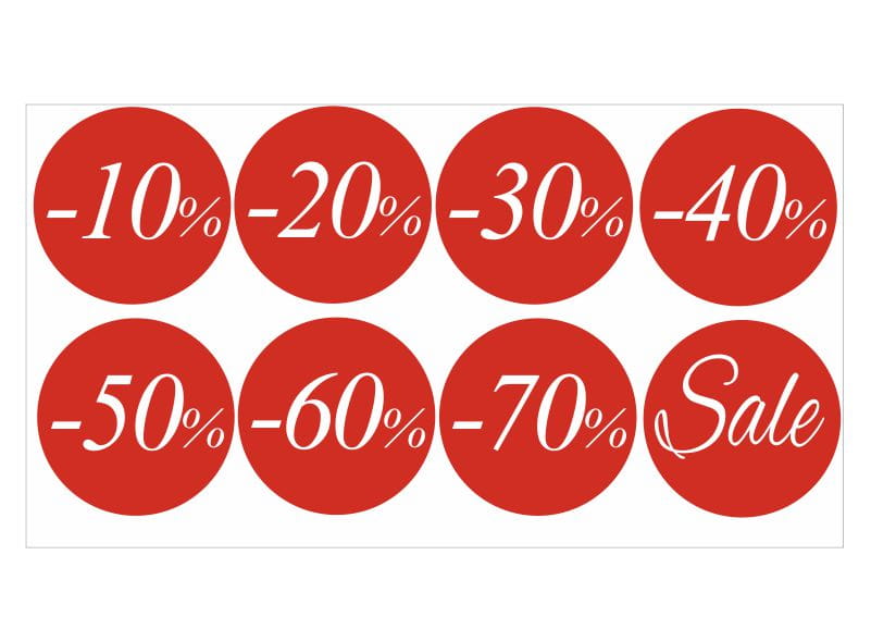 Naklejki rabatowe na witryny sklepowe, Rabat