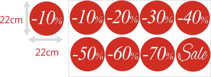 Naklejki rabatowe na witrynę, szybę, 8 szt., -20%, -30%, -50%, SALE037