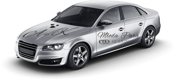 Naklejki ślubne na auto, dekoracją auta do ślubu.