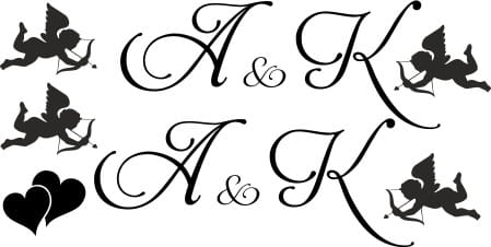 Naklejki ślubne na samochód, inicjały, serca, Kupidyn 005