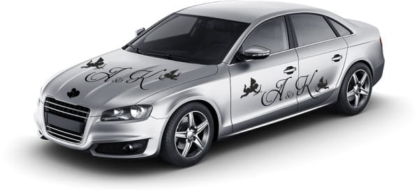 Naklejki ślubne na auto, dekoracją auta do ślubu.