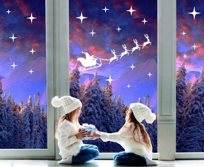 Świąteczne naklejki "Naklejki na Boże Narodzenie, sanie Mikołaja, gwiazdki "