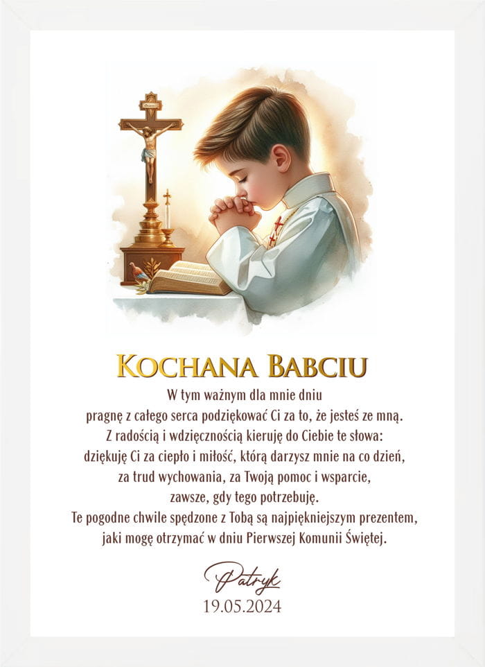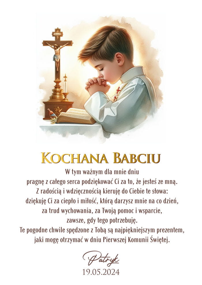 Obraz podziękowanie dla Babci z okazji Pierwszej Komunii Świętej od prawnuka