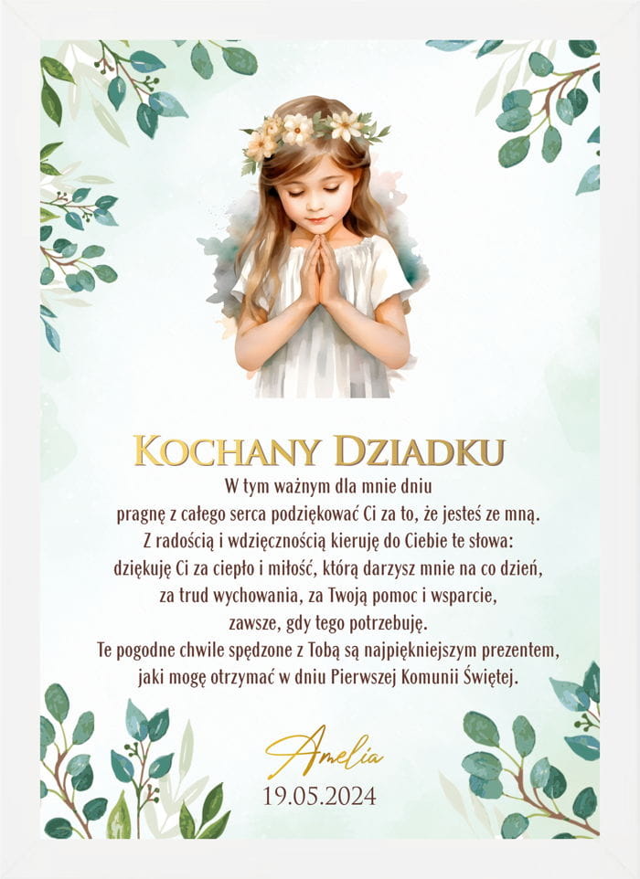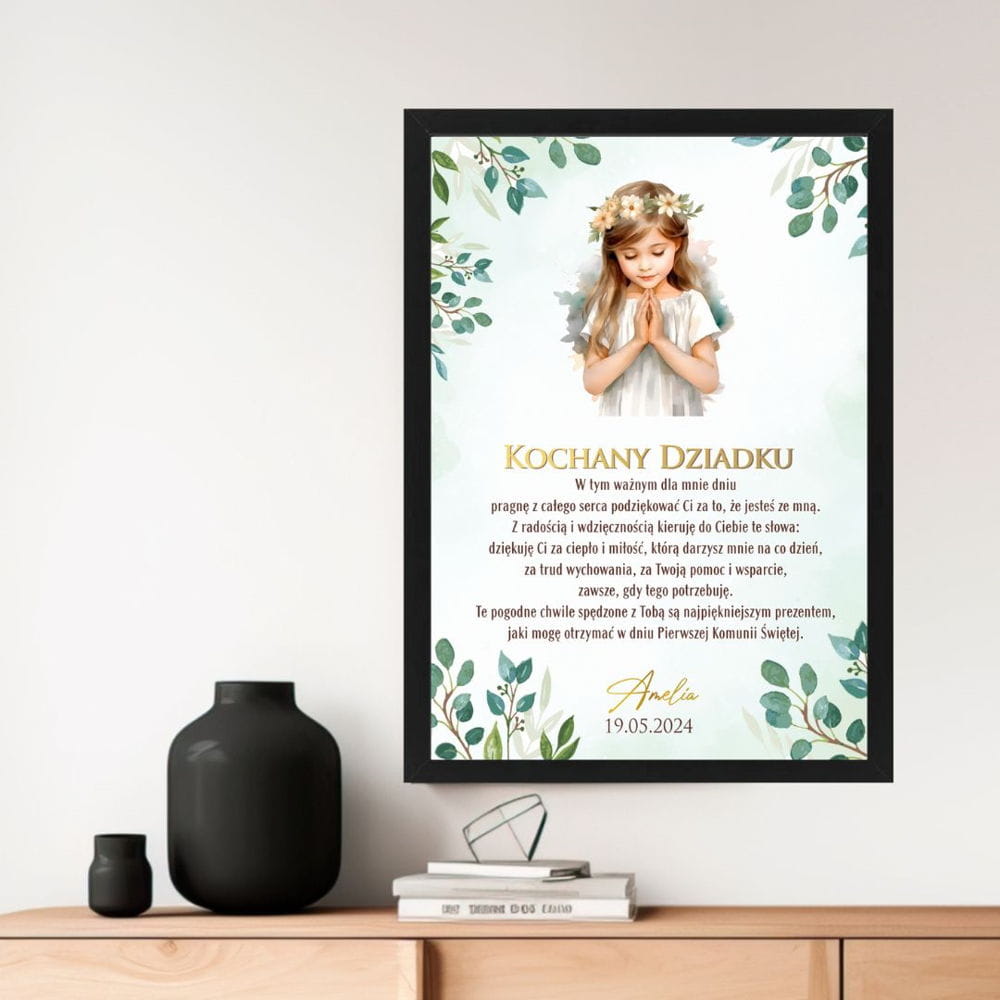 Obraz w ramce podziękowanie dla Dziadka z okazji Pierwszej Komunii Świętej od prawnuczki