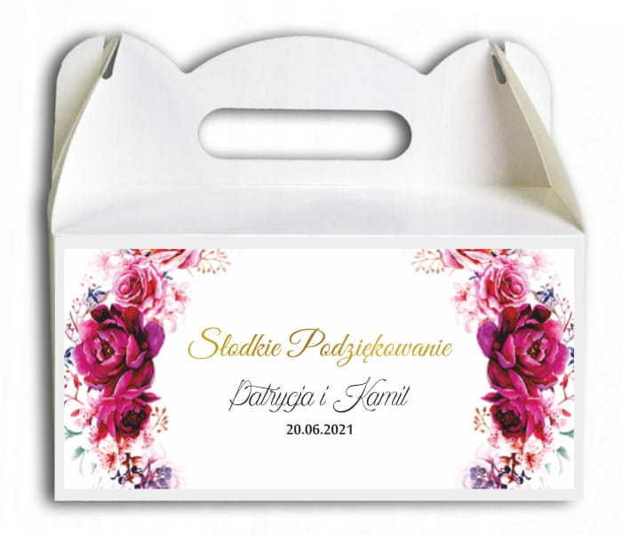 Pudełko na ciasto, Podziękowania dla gości, Wianek, Kwiaty