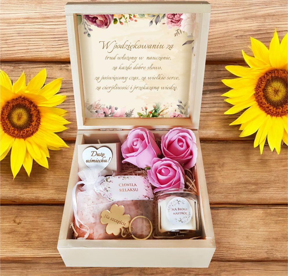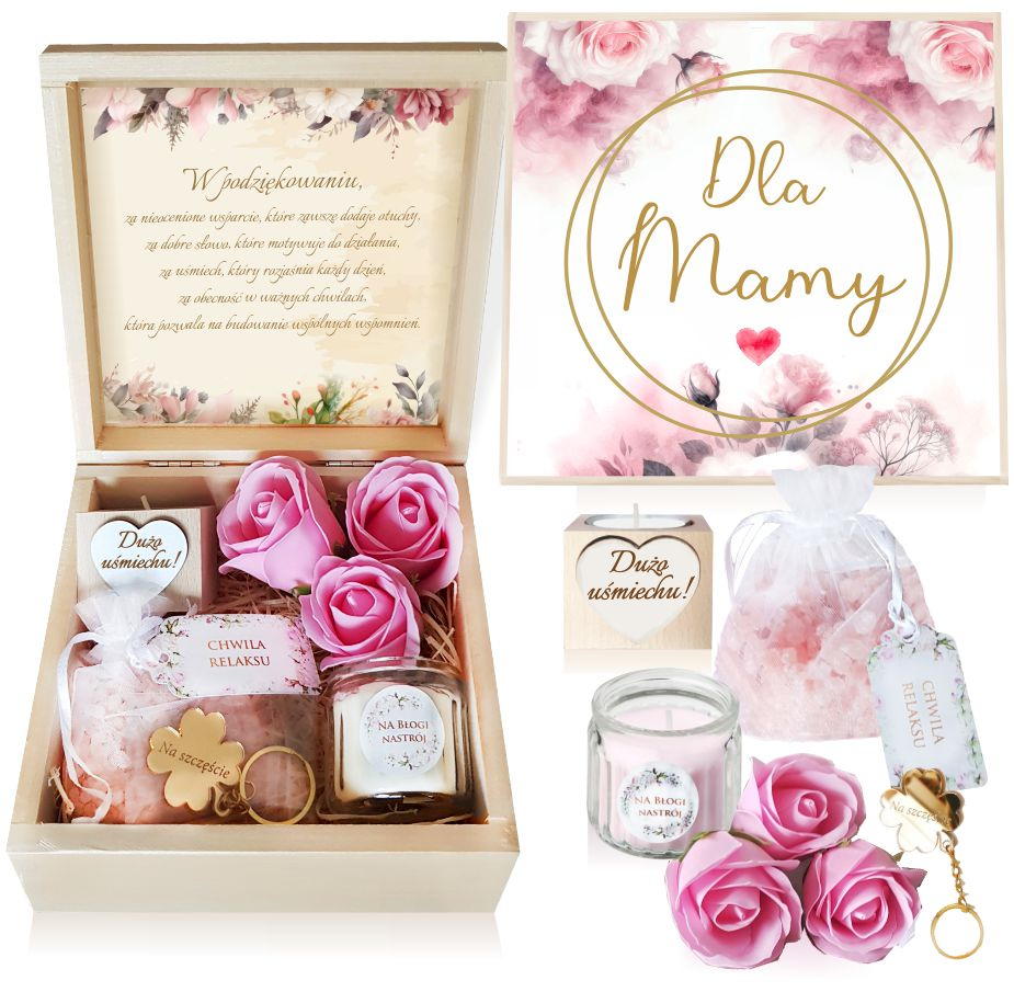 Nasze eleganckie, drewniane pudełko skrywa w sobie prawdziwe skarby, które umilą każdej kobiecie chwile relaksu i odpoczynku.