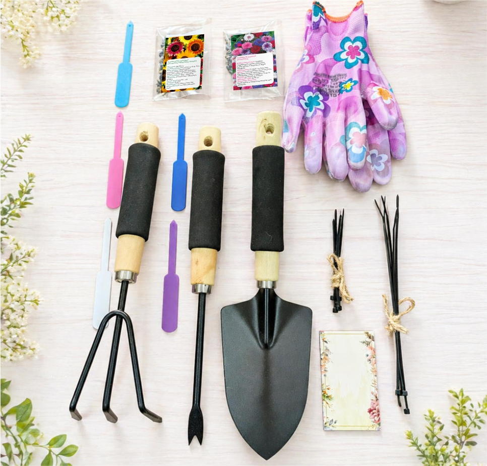✅ Zestaw narzędzi do sadzenia (szpadel, kultywator, szpikulec ogrodniczy) – idealny na początek i do codziennej pielęgnacji roślin