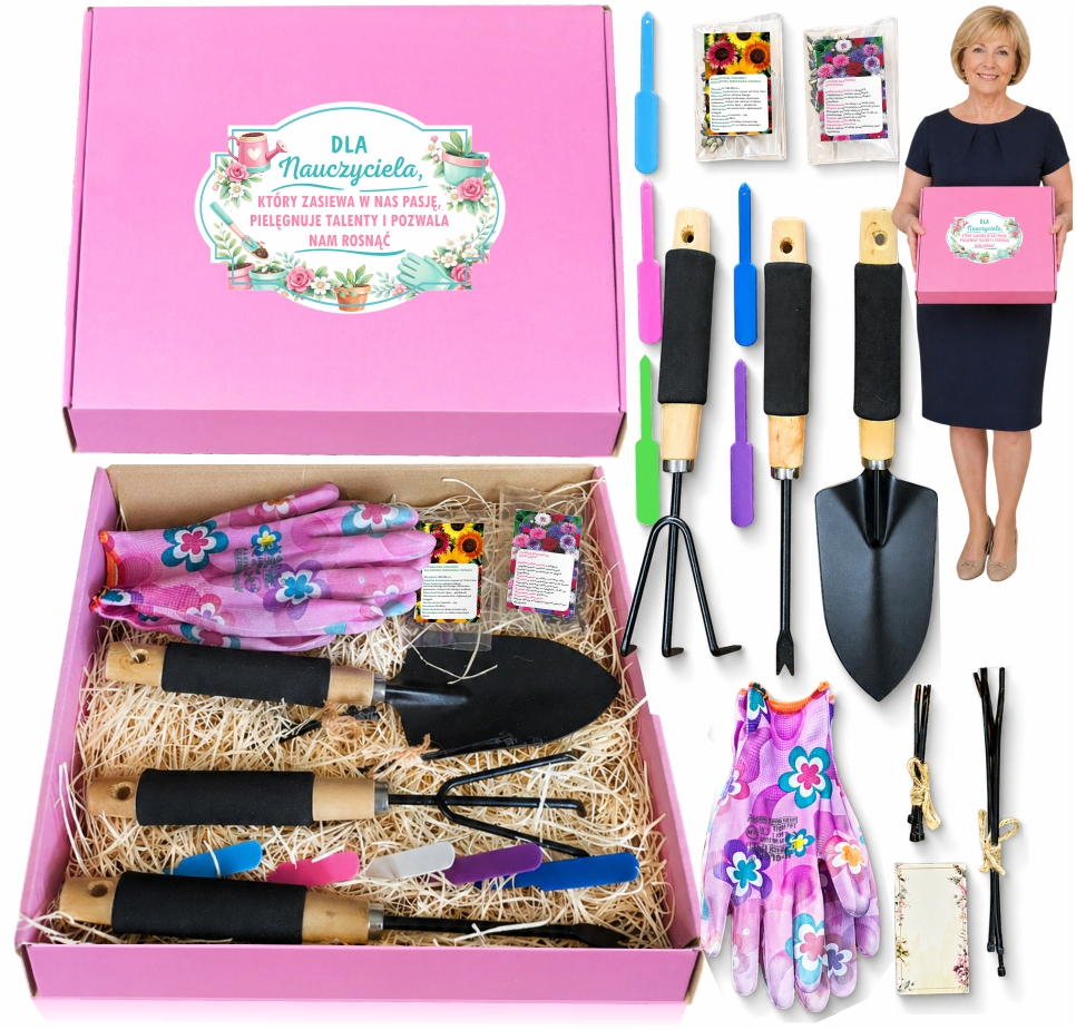 PREZENT DLA NAUCZYCIELA NA ZAKOŃCZENIE ROKU ZESTAW NARZĘDZI OGRODOWYCH BOX PODZIĘKOWANIE DLA WYCHOWAWCY