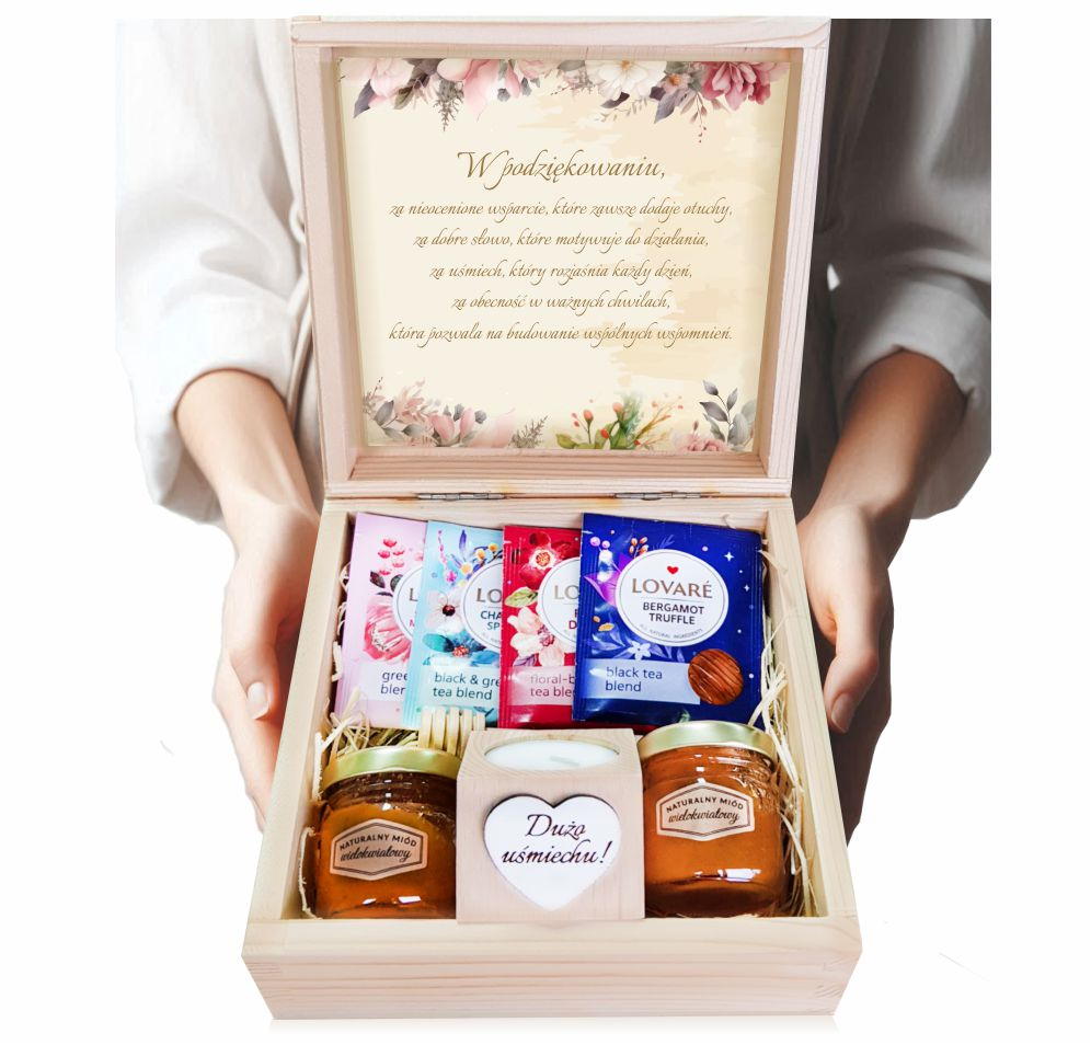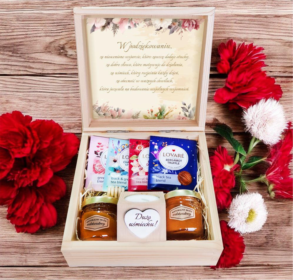 Do pudełka można dodać własny, spersonalizowany upominek - kartkę z osobistymi życzeniami, ulubioną czekoladę, zdjęcie czy mały symbol miłości. Dzięki temu prezent stanie się jeszcze bardziej wyjątkowy i niepowtarzalny.