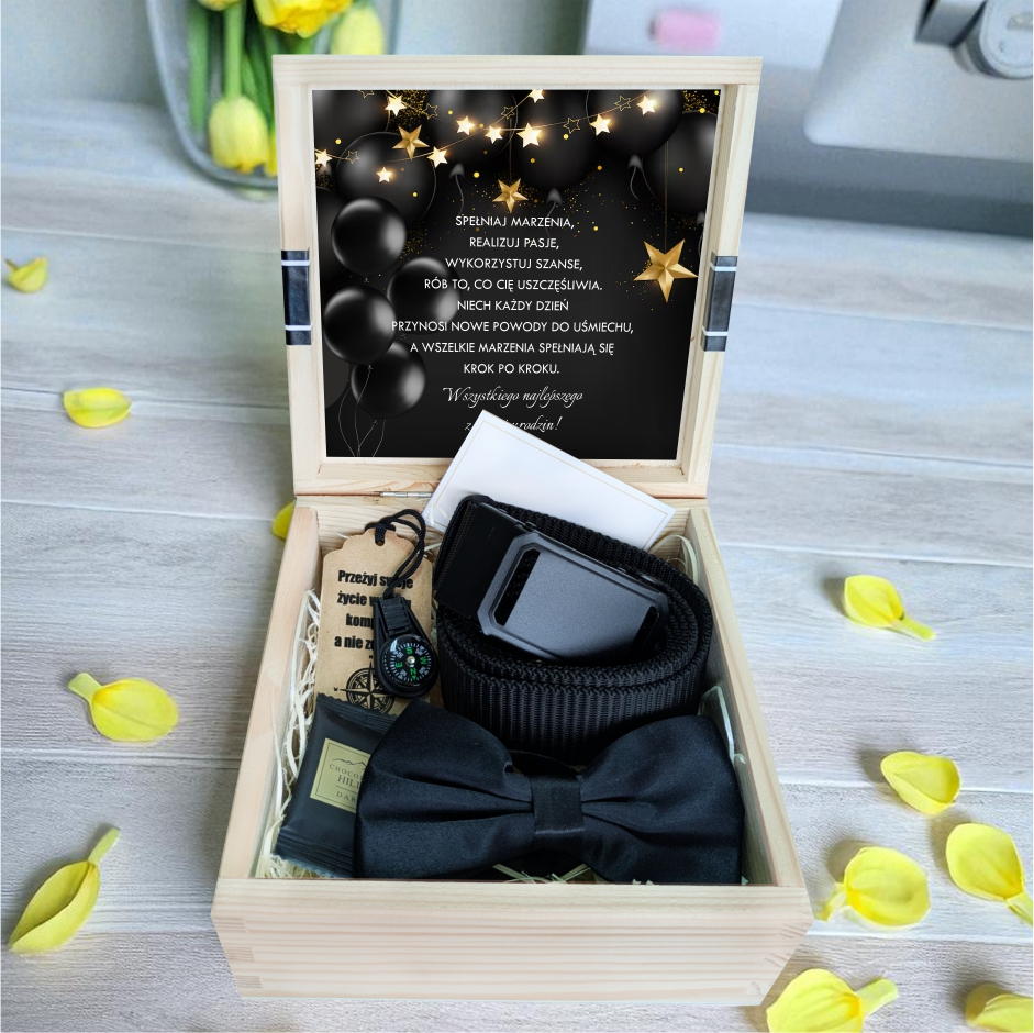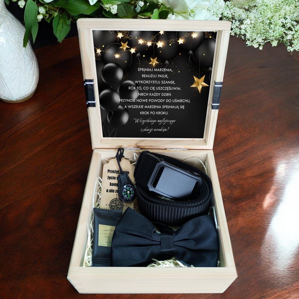 Do pudełka można dodać własny, spersonalizowany upominek - kartkę z osobistymi życzeniami, ulubioną czekoladę czy zdjęcie. Dzięki temu prezent stanie się jeszcze bardziej wyjątkowy i niepowtarzalny.