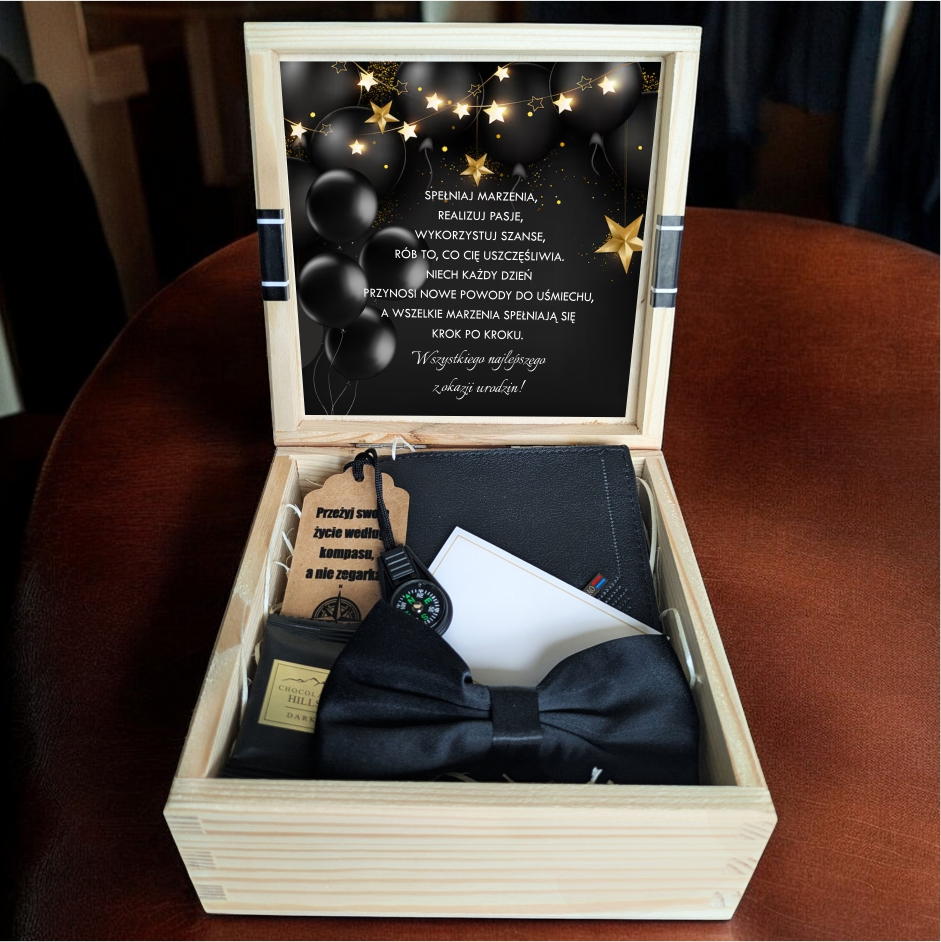 Do pudełka można dodać własny, spersonalizowany upominek - kartkę z osobistymi życzeniami, ulubioną czekoladę czy zdjęcie. Dzięki temu prezent stanie się jeszcze bardziej wyjątkowy i niepowtarzalny.
