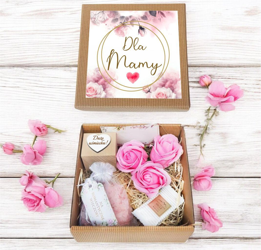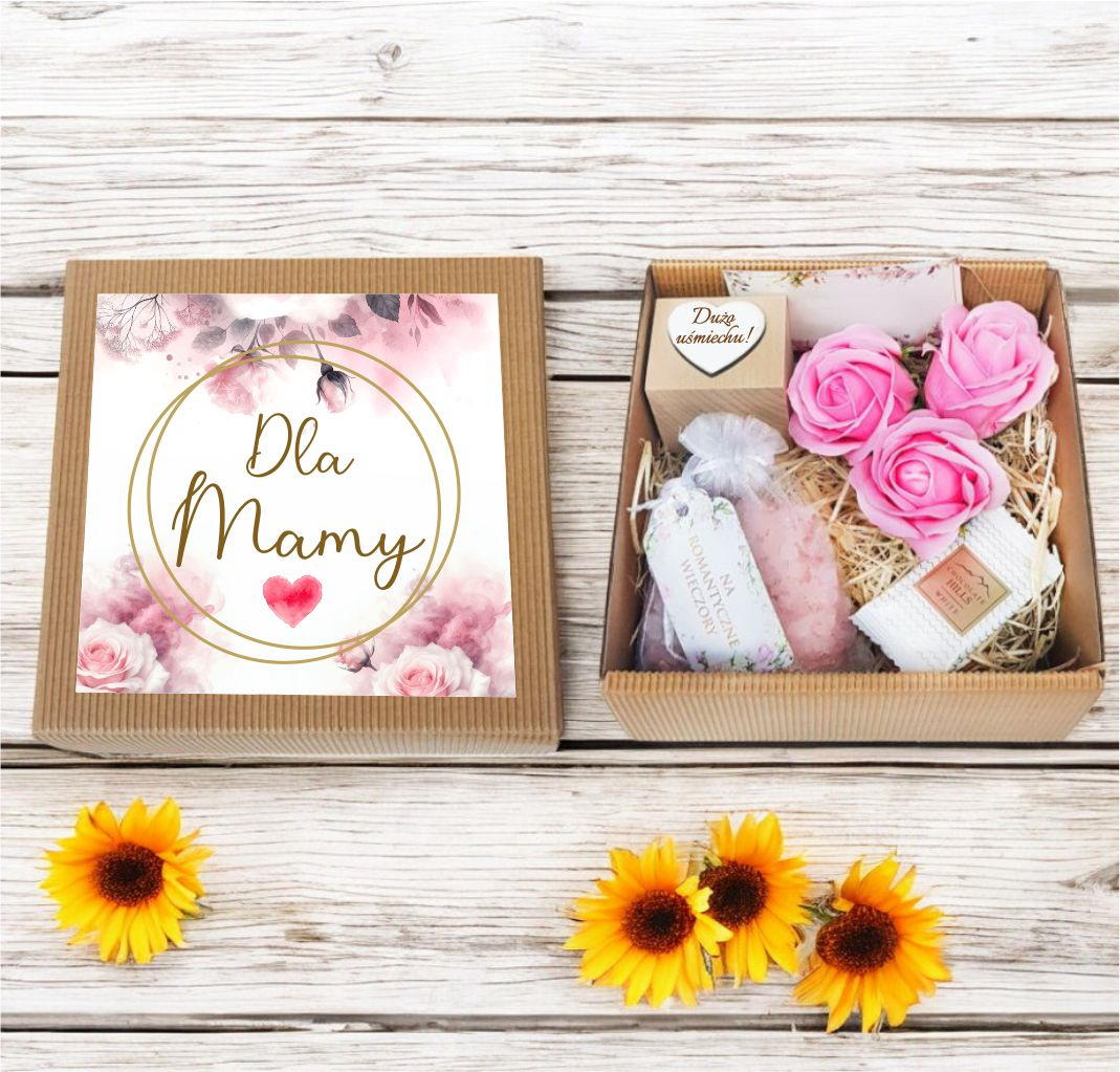 Całość ułożona na naturalnej wełnie drzewnej, prezentuje się wyjątkowo stylowo, czyniąc pudełko idealnym prezentem dla każdej mamy.