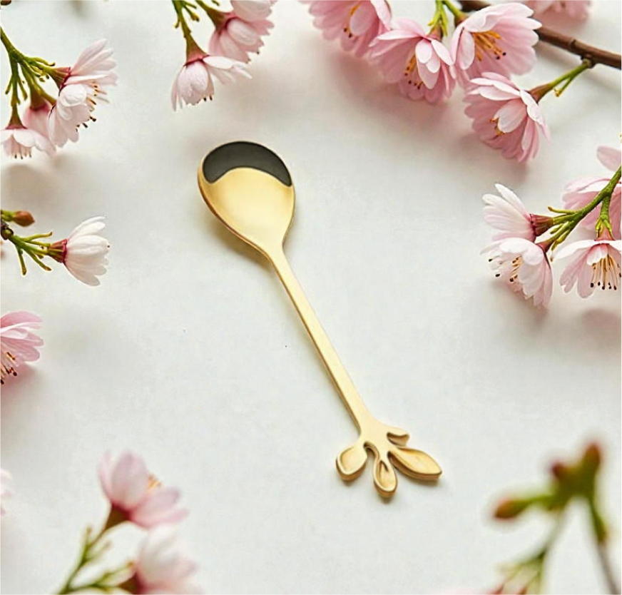 Złota łyżeczka – klasyczna elegancja ze stali nierdzewnej, idealnie dopełniająca całość.